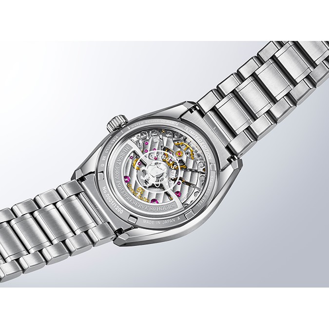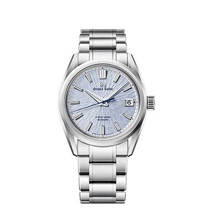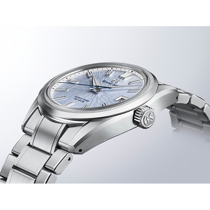 Die Schönheit der Natur ist im Grand Seiko Studio Shizukuishi, wo alle mechanischen Grand-Seiko-Uhren hergestellt werden, allgegenwärtig. Im Norden Japans, mit dem Berg Iwate in der Ferne, erwecken die Meisteruhrmacher und -uhrmacherinnen die Zeitmesser an einem Ort zum Leben, der tief mit der lokalen Umgebung verbunden ist. Die Uhr verfügt über ein neues strukturiertes Zifferblatt, das von den Bergkämmen des Iwate inspiriert ist. Das erste Zifferblatt mit dem Muster des Berges erschien 2006 und ist seither eng mit der mechanischen Uhrmacherkunst von Grand Seiko verbunden. Der Iwate ist einer der aktivsten Vulkane Japans; seine Geschichte ist in der zerklüfteten Berglandschaft und dem Lavastrom an seinem nördlichen Fuße zu spüren. Das Zifferblatt dieser Kreation fängt seine zeitlose Schönheit aus der Vogelperspektive ein, wobei der auffällige hellblaue Farbton an die Reinheit der Luft und des Wassers erinnert, die dieses Wahrzeichen umgeben. Das Gehäuse und das Armband bestehen aus Ever-Brilliant-Stahl, einer Edelstahllegierung, die eine höhere Korrosionsbeständigkeit aufweist, als sie heute in der Uhrenindustrie üblich ist. Die Uhr wird vom Kaliber 9SA5 angetrieben, das dank der Verwendung der hocheffizienten Doppelimpulshemmung und der beiden Federhäuser eine Gangreserve von 80 Stunden bietet.