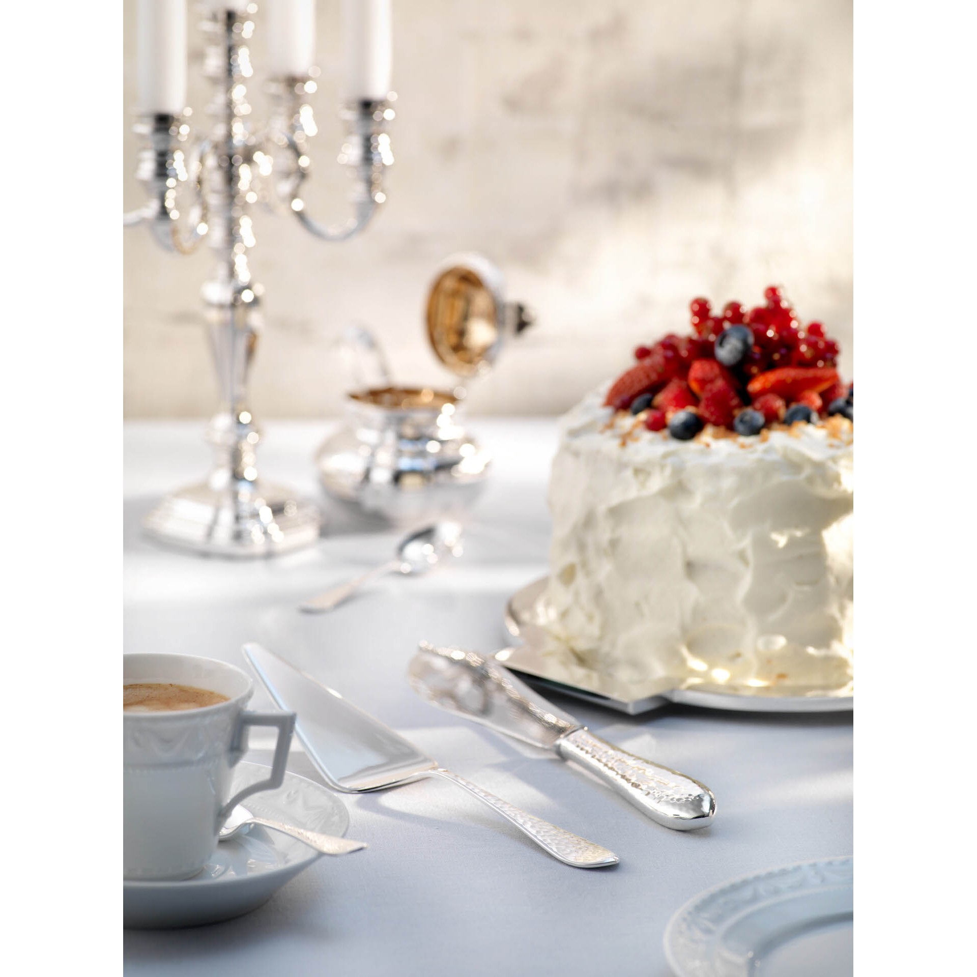 Die Martelé Menügabel wird bei Robbe & Berking mit besonders viel Liebe zum Detail gefertigt: Selbst die Innenseiten der Zinken werden von Hand glänzend poliert, sodass sich die Gabel besonders angenehm im Mund anfühlt und der einzigartige Glanz des Silbers sich in jedem Millimeter des Besteckstücks widerspiegelt. Bestecke in Menügröße sind kleiner und handlicher als das festliche Tafelbesteck, aber größer als das Vorspeisen- und Dessertbesteck. Es eignet sich damit hervorragend für den alltäglichen Gebrauch.