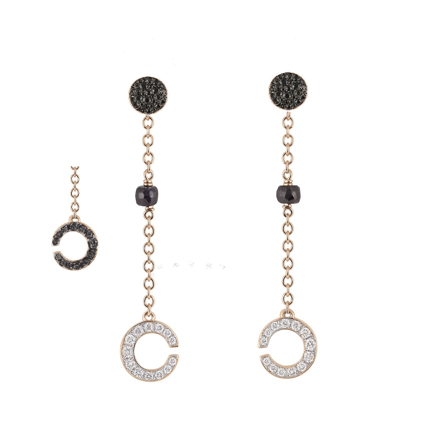 Details: Die Halbmonde sind vorderseitig mit weißen Brillanten und rückseitig mit schwarzen Saphiren ausgefaßt.
